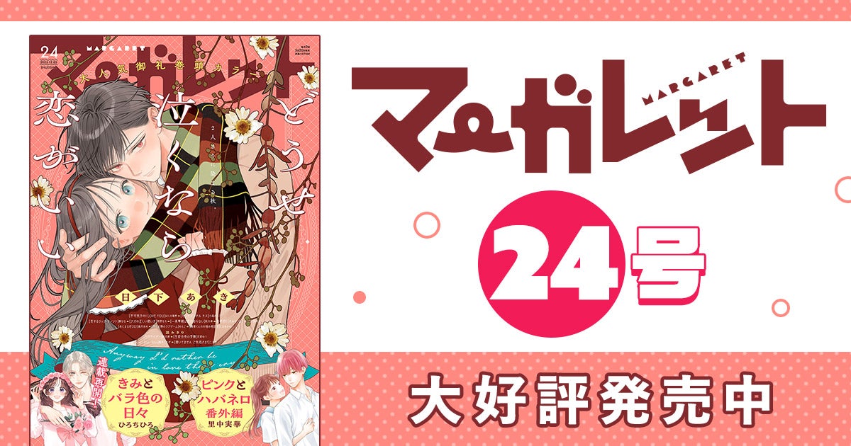 「マーガレット」23号掲載読みきり 【無料】きみはタイプじゃありません! 【無料】図書室の番犬 【無料】ラブ×バト 【無料】ゆうやけは日和 【無料】でっかいでっかい愛のうた 「yoi」掲載読みきり 【無料】きみと花火 注目の新連載 【無料】まんなかのあいつら 連載作品 完結作品