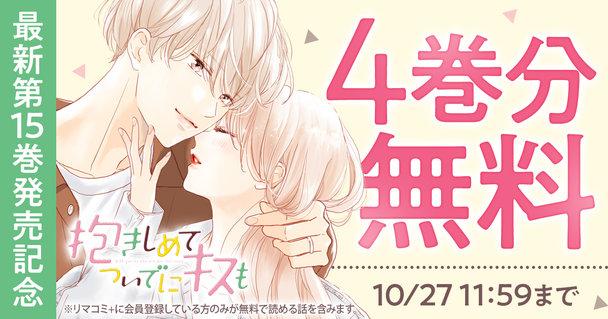 『抱きしめて ついでにキスも』 (美森青)最新第15巻が本日9/25(木)に発売したことを記念して、 4巻分無料で読める キャンペーンを、集英社の少女・女性向けマンガ作品を集めた総合配信サイト「リマコミ+」にて開催中です。