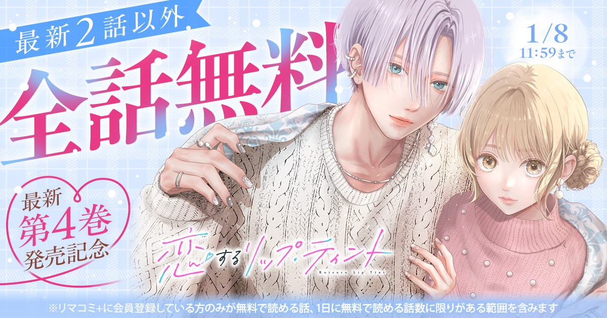 『恋するリップ・ティント』 (楠なな)最新第4巻が12/24(水)に発売したことを記念して、 最新2話以外が全話無料で読める キャンペーンを、集英社の少女・女性向けマンガ作品を集めた総合配信サイト「リマコミ+」にて開催中です。