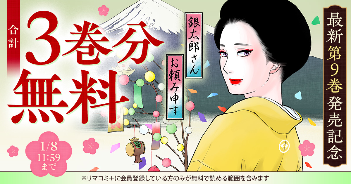 『銀太郎さんお頼み申す』 (東村アキコ)最新第9巻が12/24(水)に発売したことを記念して、 合計3巻分無料で読める キャンペーンを、集英社の少女・女性向けマンガ作品を集めた総合配信サイト「リマコミ+」にて開催中です。