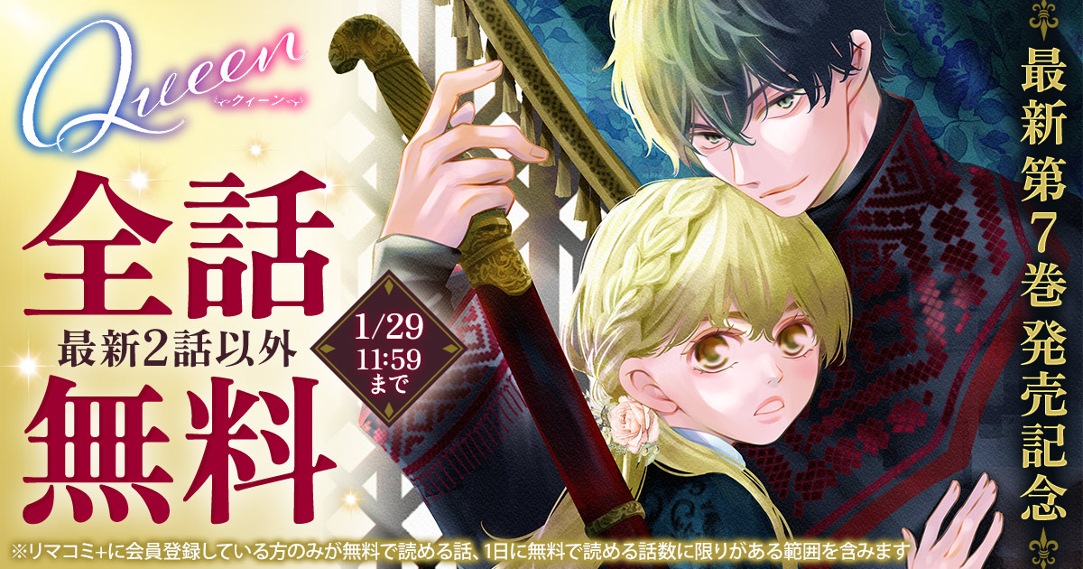 『Queen』 (小田原みづえ)最新第7巻が1/15(木)に発売したことを記念して、 全話無料で読める キャンペーンを、集英社の少女・女性向けマンガ作品を集めた総合配信サイト「リマコミ+」にて開催中です(最新2話はキャンペーン範囲から除きます)。