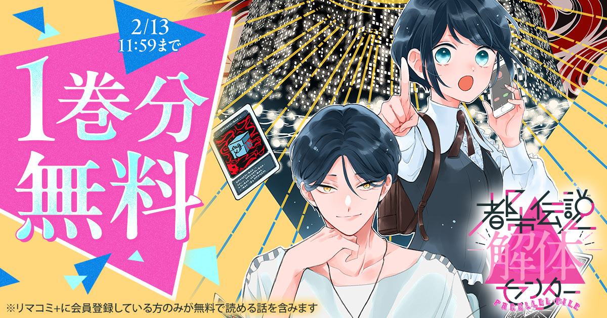 『都市伝説解体センター Parallel File』 (漫画:いしかわえみ、原作:『都市伝説解体センター』(墓場文庫)、協力:集英社ゲームズ ) 1巻分無料で読める キャンペーンを、集英社の少女・女性向けマンガ作品を集めた総合配信サイト「リマコミ+」にて開催中です。