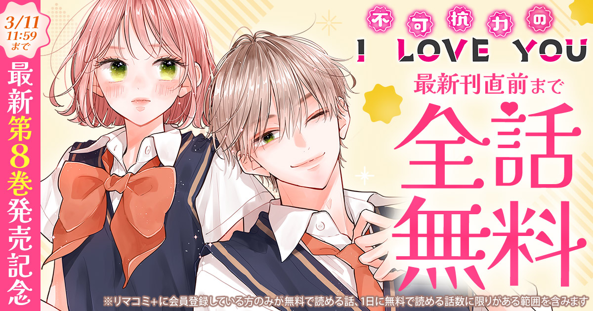 『不可抗力のI LOVE YOU』 (ほしの瑞希)最新第8巻が本日2/25に発売したことを記念して、 最新刊直前まで全話無料で読める キャンペーンを、集英社の少女・女性向けマンガ作品を集めた総合配信サイト「リマコミ+」にて開催中です。