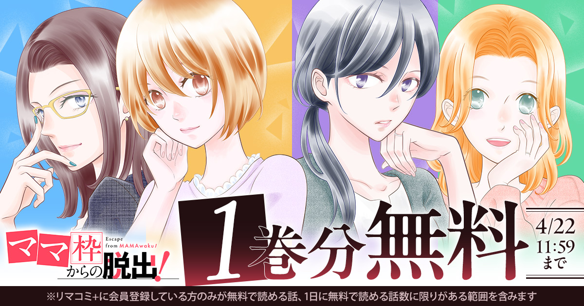 『「ママ」枠からの脱出!』 (漫画:月島珊瑚 、原作:らるむ(エブリスタ) )が 1巻分無料で読める キャンペーンを、集英社の少女・女性向けマンガ作品を集めた総合配信サイト「リマコミ+」にて開催中です。