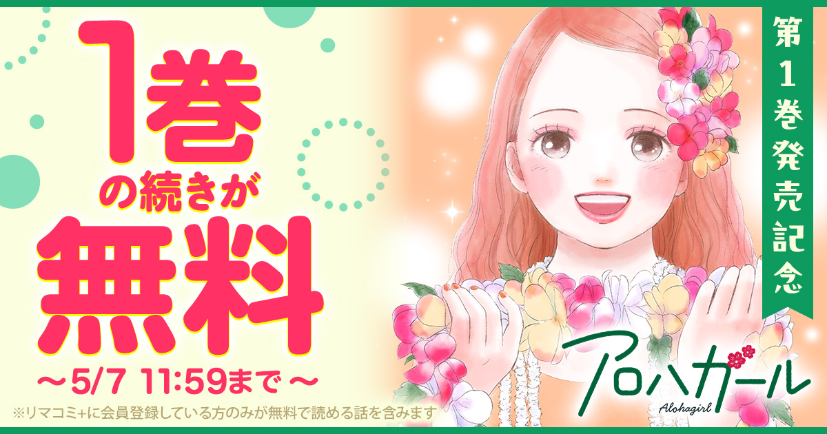『アロハガール』 (原作:如月園、作画:萩原さおり)第1巻が本日4/23(木)に発売したことを記念して、 1巻の続きが無料で読める キャンペーンを、集英社の少女・女性向けマンガ作品を集めた総合配信サイト「リマコミ+」にて開催中です。