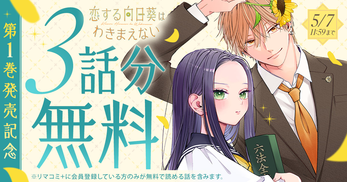 『恋する向日葵はわきまえない』 (泉麦歩)第1巻が本日4/23(木)に発売したことを記念して、 3話分無料で読める キャンペーンを、集英社の少女・女性向けマンガ作品を集めた総合配信サイト「リマコミ+」にて開催中です。